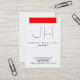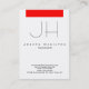 Red white vertical modern plain monogram business card