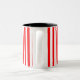 Red White Vertical Stripes Black Monogram Two-Tone Coffee Mug