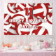 This volleyball themed birthday party banner is fully customizable and features randomly arranged red and white volleyballs, upon which you can personalize your custom message and the child's age - by katz_d_zynes