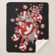 This cute girl's volleyball themed Sherpa fleece blanket features an "explosion" of red and white volleyballs in varying sizes and red and grey star shapes and white polka dots on the red star, all on a customisable black background - the volleyballs' red panels are blended with a girly, floral kaleidoscopic pattern - customise with player's name and jersey number - katz_d_zynes