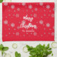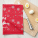 Red White Winter Snowflakes Modern Merry Christmas Tea Towel
