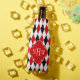 Red Wht Black Harlequin Red Quatrefoil 3 Monogram Bottle Cooler