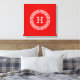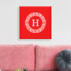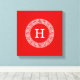 Red Wht Greek Key Rnd Frame Initial Monogram Canvas Print