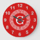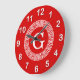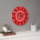 Red Wht Greek Key Rnd Frame Initial Monogram Large Clock