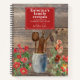 A simple minimalist rustic wood background and white script text recipe cookbook with watercolor kitchen utensils and red wildflowers recipe book that can be customised to your name and volume number. An ideal gift for food lovers, bridal shower, foodies, cooks, chefs etc. Keep your family recipes, baking recipes, mum's recipes or favourite cooking recipes all in one book. Great gift for anyone who loves the kitchen. Customise the text and make it your own.