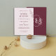 The backside feature a header motif of your custom wedding monogram, framed by a delicate minimalist floral illustration against a vibrant red wine backdrop.