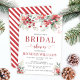 Elegant watercolor red green winter berries forest leaves and branches bridal shower invitation.