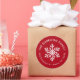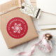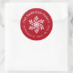 Affordable custom printed round return address stickers personalised with your family name and return address. This simple modern holiday design features a white snowflake on a festive red background. Use the design tools to choose any background colour, edit text fonts and colours or upload your own photos to design your own unique holiday return address labels, envelope seals or gift tag stickers.