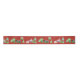 This charming ribbon features original whimsical paintings of a winter village, tiny houses, snowflakes, pine trees, and an icy pond on a festive red background.