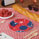 We love this design, red with blue spatters and black and white stars! It's available on 2 sizes of round plates, 2 sizes of square plates and a round bowl.