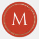 This set of 20 small 1.5" round monogram envelope seals feature a bright red background surrounded by a faux gold border with a white monogram initial.
