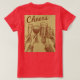 This t-shirt features a celebration image with the word Cheers in red script in the upper left and four hands raising drinks in a toast. The image, text and lines are red. The background is a metallic gold colour. The t-shirt is a Basic Women's Short Sleeve t-shirt. The image is on the front and back of the t-shirt.