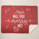Pop the question and an intimate way with this beautiful blanket. Design features red hearts and custom will you marry me quote.