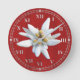 Red Wood Look with White Edelweiss Bloom Round Clock