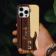 Two tone colour block red wood and tan brown guitar cell phone case. Personalise it by adding your name. Great for an electric guitarist.