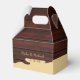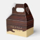 Two tone colour block red wood and tan brown guitar wedding favour box for guests. Personalise it by adding the bride and groom wedding details. Great for music lovers and a country rustic wedding theme.