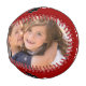 “World’s greatest Dad.” Let Dad know what you really think of him. Cool, modern white and light yellow typography and a black banner with multicolored dots overlay a brick red background. Add two photos of your choice and customise the copy for the perfect, personalised keepsake baseball that he’ll treasure always. Makes a great Dad gift for Father’s Day or his birthday!