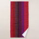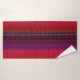 This contemporary, decorative bath towel set features a colourful abstract pattern of an image which resembles woven bands. The brilliant colours of red, purple, blue, orange and black seem to have a neon glow. The image of the woven texture is very realistic but it is actually a machine washable polyester blend.