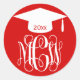 Red Wt Vine Script Monogram Graduation DIY BG Classic Round Sticker