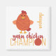 You fought the yarn chicken ... and won!!! Celebrate with this cute design of a yarn chicken and the words declaring you a yarn chicken champion. Available in red/orange, green/brown, teal/rust and blue/purple. Matching products available.