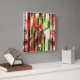 Stamped of abstract coloured stripes with some digital 'paper mosaic' effect and some gradient effect with some depth perception and relief with small rough grainy, and, a some dark brown spots that resemble a burn. I created three versions for this drawing(image, stamp), so you can, using the options on the website, remove the layers(skin, image) and choose the one that is under it, as well as you can choose a colour filter so that the print is in your preferred style.