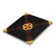 Elegant and stylish ceramic tile design featuring geometric shapes in red, yellow and grey on a black background.