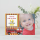 Red Yellow Firetruck Child's 2nd Birthday Photo In Invitation