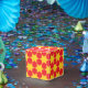 Red yellow star pattern party or event gift box