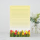 Red Yellow Tulip Flowers Yellow Background Lined Stationery