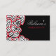 Cute and elegant business card with animal print hearts in black, white, red. Perfect for your company promotion. Suitable for make up artists, hairdressers, hairstylists, stylists, spa salon, make up artists, event planners, wedding planners or model agency. Customisable.