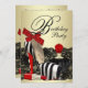 Elegant lace, black and gold perfume bottle, red lipstick and red zebra high heel shoe birthday party invitation template. This pretty red zebra birthday party invitation is easily customised for your event by adding your event details, font style, font size & colour, and wording. Please note - all of the stickers, cards and invitation designs you will find on Zazzle are printed graphics with no actual jewels, bows, raised, embossed, or added parts or pieces.
