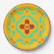 Red Zia Symbols New Mexico Turquoise Feathers Paper Plate