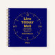 Redeem The Time LIVE TODAY WELL Notebook, designed in blue and gold, with an open dial clockface in gold. Inside the clockface, the text reads LIVE TODAY WELL followed by Christian Bible verse - Redeeming the time - which is based on Ephesians 5:16. This Scripture verse is CUSTOMIZABLE, as is the placeholder name and year. This Christian notebook can be used as a prayer journal, devotional diary, spiritual to do list, daily intentions planner, etc, and would make a great gift for Christmas, New Year, birthdays, Mother's Day and Father's Day. Other Live Today Well designs are available.