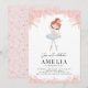 Dance and twirl for the birthday girl! Invite family and friends to your child's birthday with this elegant and whimsical birthday invitation. It features watercolor illustrations of a red hair ballerina in a white dress with blush pink and gold flowers. Personalise by adding the celebrant's name and birthday details. Customise the invitation further by changing the back image to a photo or any other image.