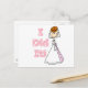 A smiling red haired bride in a wedding gown and pink text with white hearts that reads "I DID IT!" is featured on bride T-shirts, mugs, mousepads, stickers, cards, buttons, keychains, and more!