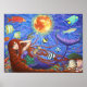 Redhead Mermaid in Corset with Moon and Fish Poster