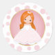 This design features a cute red haired Princess with pink gown, crown and gloves on a super cute pink dot background.