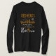 I love this shirt. I had written to the artist asking her if this picture was available on a shirt, and she wrote me back telling me where I could find the shirt. These shirts can be custom made to have a different saying. I loved this saying and went with it. The artist wrote me back later to tell me that she had seen my order go through. How's that for service? Pretty special. It's just as displayed. Perfect!