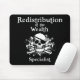 Pirate skull and crossbones on splatter with "Redistribution of the Wealth Specialist" in Gothic script. B/W, t-shirts, sweats, cards, mugs, gifts.