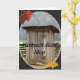 A rustic country outhouse framed by mountains and autumn leaves. Titled Redneck Rest Stop.
