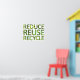 An abstract artwork of many interesting lines and shapes in various shades of green makes up the letters of this message, Reduce Reuse Recycle. This is a great poster to show your love of the environment and to spread the message to others.