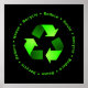 Black poster with a green recycling symbol surrounded by "Reduce - Reuse - Recycle" in repeating green text.