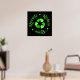 Reduce - Reuse - Recycle - black poster with green script lettering and recycling symbol.