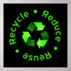 Reduce - Reuse - Recycle - black poster with green lettering and recycling symbol.