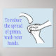 Reduce spread of germs, wash hands Posters