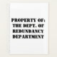 Property Of The Dept Of Redundancy Department message in a stamped stencil style text.
