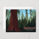 Dramatic vintage-style travel poster illustration highlighting the immense scale of a giant redwood tree, with a tiny human figure at its base, surrounded by the dense redwood forest canopy. Captures the awe-inspiring experience of Redwood National Park, California. Ideal for nature lovers, tree enthusiasts, California travelers, and collectors of retro park artwork.
