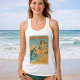 This reel beach is real salty! The sassy vintage inspired pin-up confidently handles the fishing pole while her big catch, a feisty shark, jumps out of the water. The scene is completed with palm trees, vintage car and lifeguard stand in the background. A cheeky twist on classic retro poster art that will make you laugh. This fun scoop neck tank top is perfect for the beach or everyday coastal life.