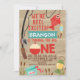 Looking for a reel exciting fishing themed first birthday invitation. This cute design is a cute way to invite guests to you little boy's first birthday. If features a light wood background, red fish, fishing bobber, fishing rod, can of worms and more.