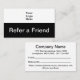 Front: This black and white referral card template has a display image on the white stripe at the top. You can replace the display image with your logo. There's white display text on the black stripe at the bottom. The text can be edited if desired. (Shown: Refer a Friend).